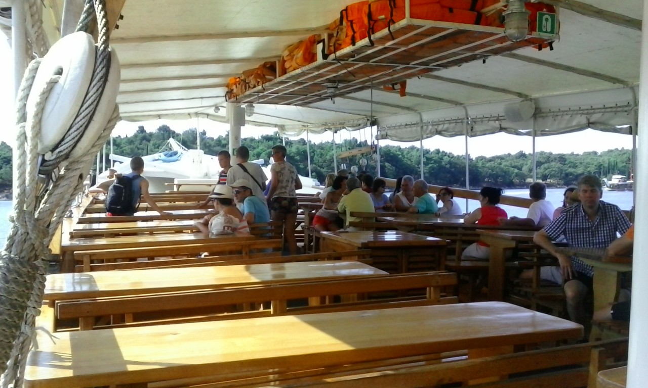Eine ganzatages Bootsausflug von Porec nach Rovinj. In Rovinj gibt es eine Pause von 2 Stunden, freizeit für Stadtbesichtigung. Mittagessen ist auf Schiff, das Menü basiert auf Fisch. Nach dem Mittagessen fährt das Boot entlang des Lim-Kanals nach Vrsar. In Vrsar gibt es eine Pause, danach kehrt es nach Porec zurück.