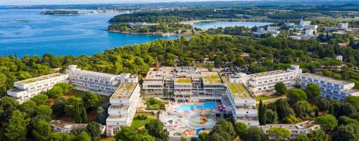 Hotel smješten uz more u Zelena resortu. U blizini je polazna stanica turističkog vlakića koji vozi za Poreč, kao i kapela Svetog Nikole.
